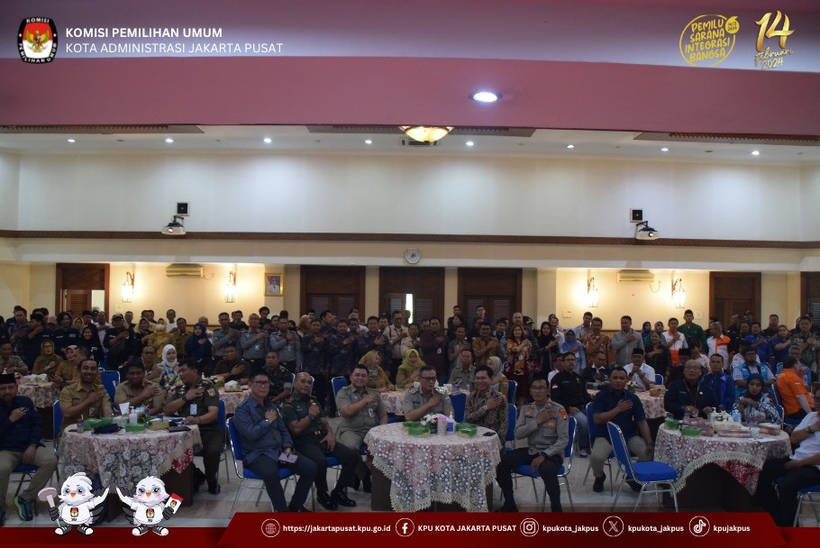 Dalam rangka menyebarluaskan informasi terkait tahapan kampanye kepada Partai Politik Peserta Pemilu 2024 tingkat Kota Jakarta Pusat serta stakeholder terkait, KPU Kota Jakarta Pusat laksanakan Rapat Koordinasi dan Sosialisasi Peraturan Kampanye Pemilihan Umum tahun 2024 di Gedung Serba Guna Utama Kantor Wali Kota Jakarta Pusat, Selasa (7/11/2023).
