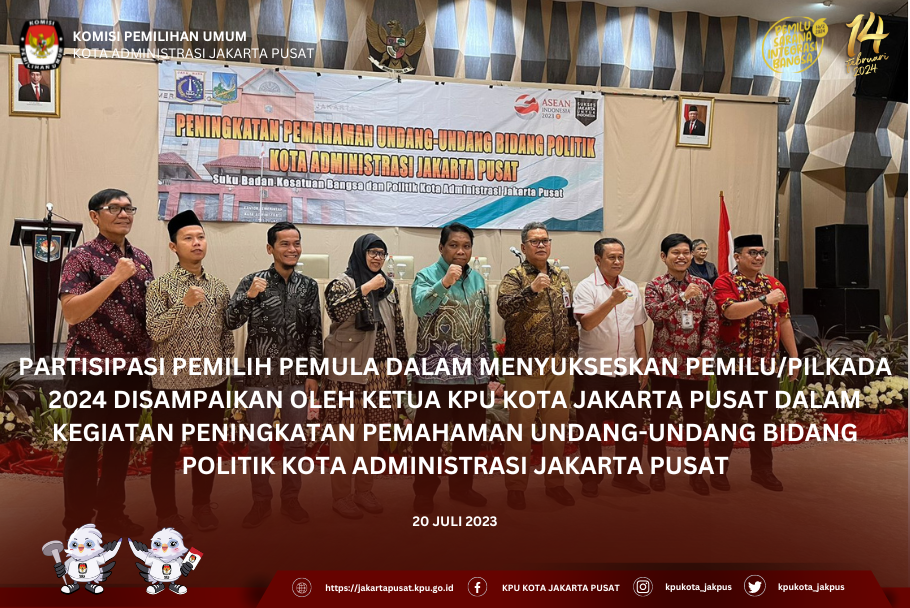 Sedangkan untuk menjadi pemilih yang partisipatif, Ketua KPU Jakarta Pusat mengajak seluruh peserta untuk memastikan dirinya sudah terdaftar di dalam Daftar Pemilih Tetap (DPT), terlibat langsung dalam penyelenggaraan Pemilu Serentak tahun 2024 dengan menjadi penyelenggara di tingkat TPS, dan yang terpenting adalah menggunakan hak suara pada Pemilu Serentak tahun 2024 yang akan digelar pada 14 Februari 2024 mendatang.