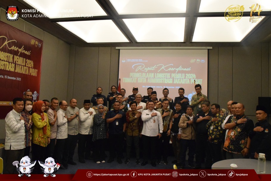 Bertempat di Hotel Ibis Styles Tanah Abang, KPU Kota Administrasi Jakarta Pusat melaksanakan Rapat Koordinasi Pengelolaan Logistik Pemilu 2024 tingkat Kota Administrasi Jakarta, Jumat (15/12/2023).