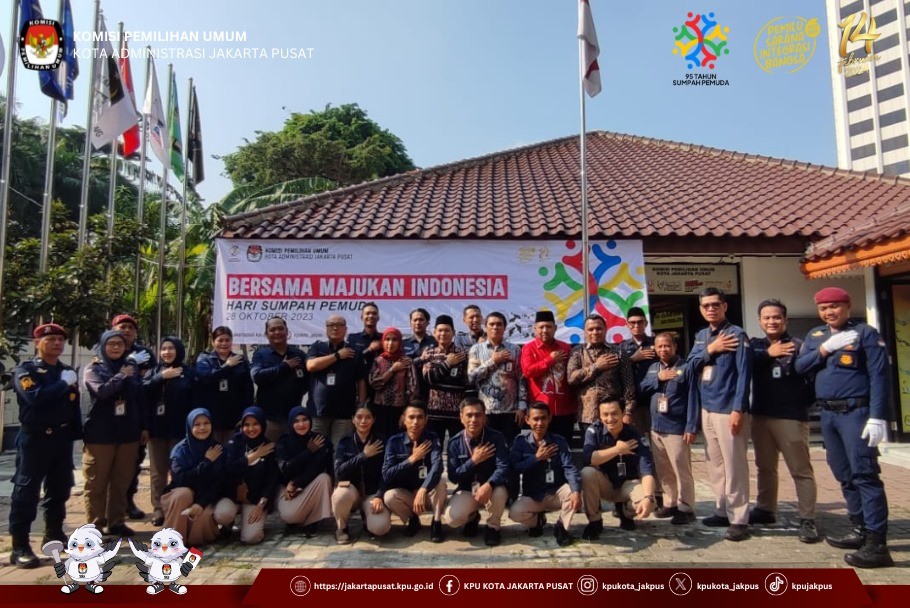 Bertempat di halaman Kantor KPU Kota Jakarta Pusat, Jalan Taman Pejambon No.7, KPU Kota Jakarta Pusat melaksanakan Upacara Peringatan Hari Sumpah Pemuda, Sabtu (28/10/2023).