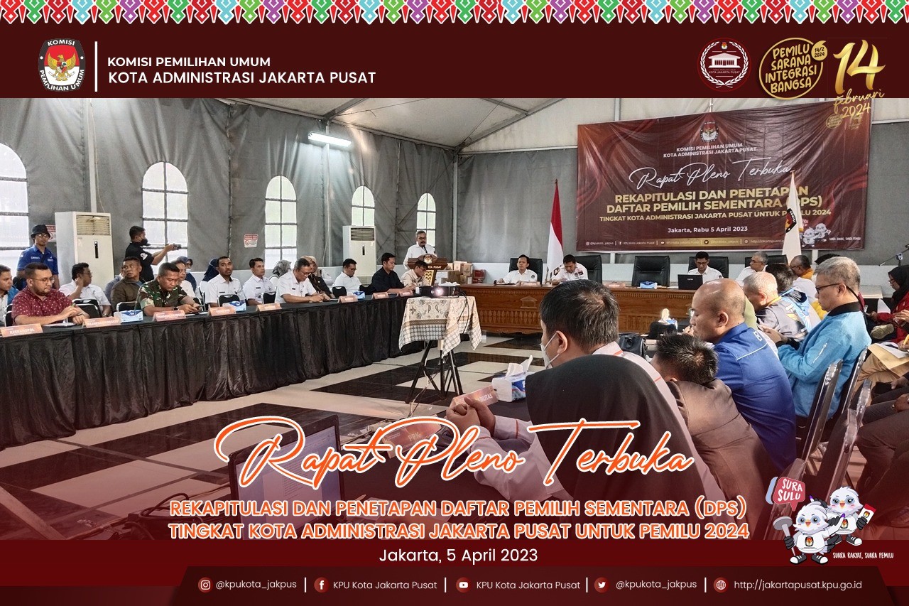 KPU Kota Jakarta Pusat Melaksanakan Rapat Pleno Terbuka Rekapitulasi dan Penetapan Daftar Pemilih Sementara Tingkat Kota Jakarta Pusat untuk Pemilu Tahun 2024