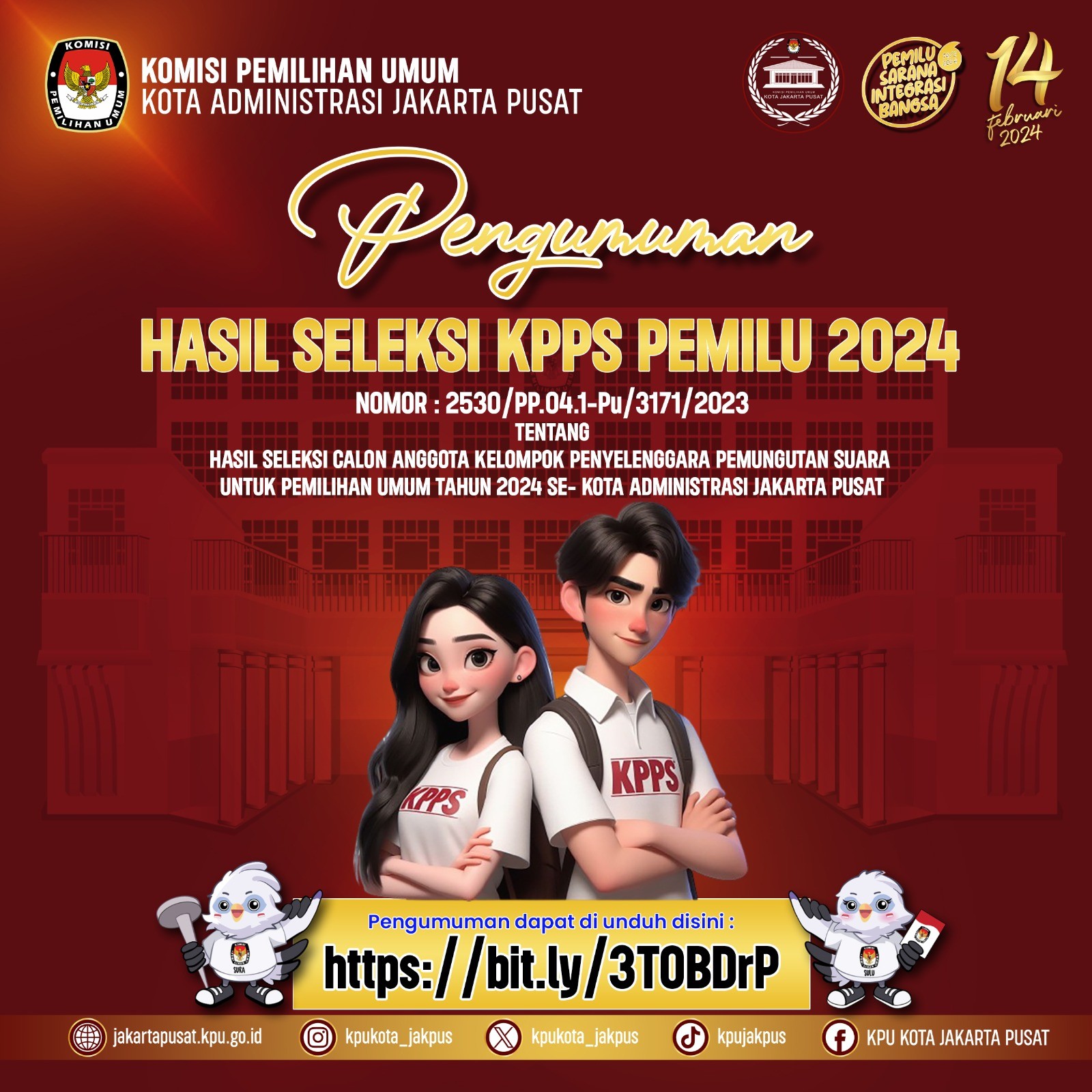 PENGUMUMAN HASIL SELEKSI CALON ANGGOTA KELOMPOK PENYELENGGARA PEMUNGUTAN SUARA UNTUK PEMILIHAN UMUM TAHUN 2024 SE-KOTA ADMINISTRASI JAKARTA PUSAT