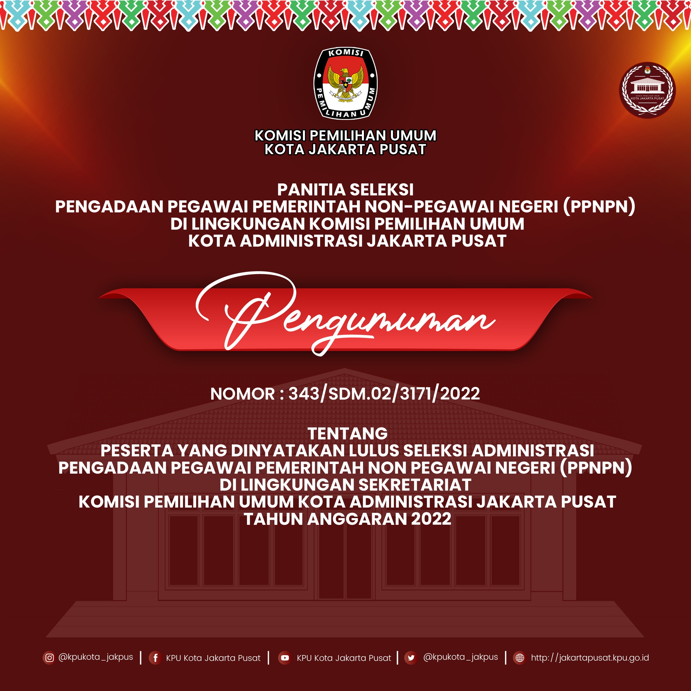 PENGUMUMAN LULUS SELEKSI ADMINISTRASI PPNPN KPU KOTA ADMINISTRASI JAKARTA PUSAT TAHUN 2022