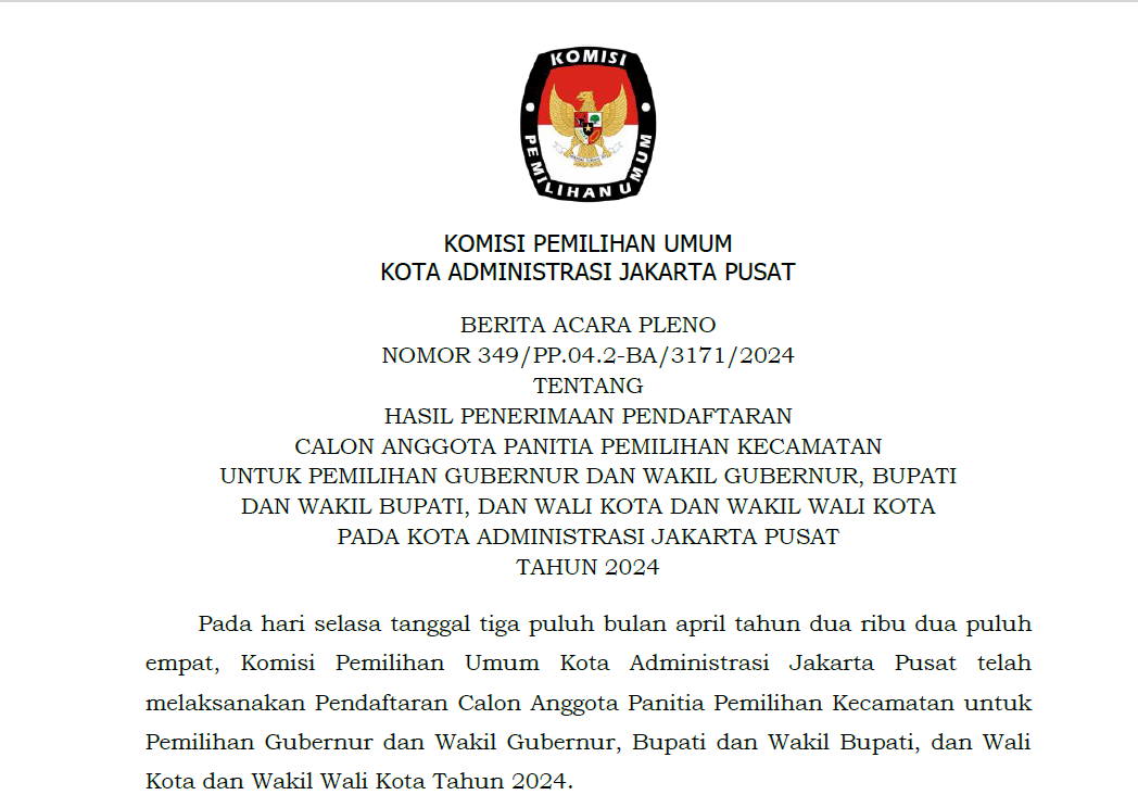 Pengumuman Penutupan Pendaftaran Panitia Pemilihan Kecamatan Kota Jakarta Pusat