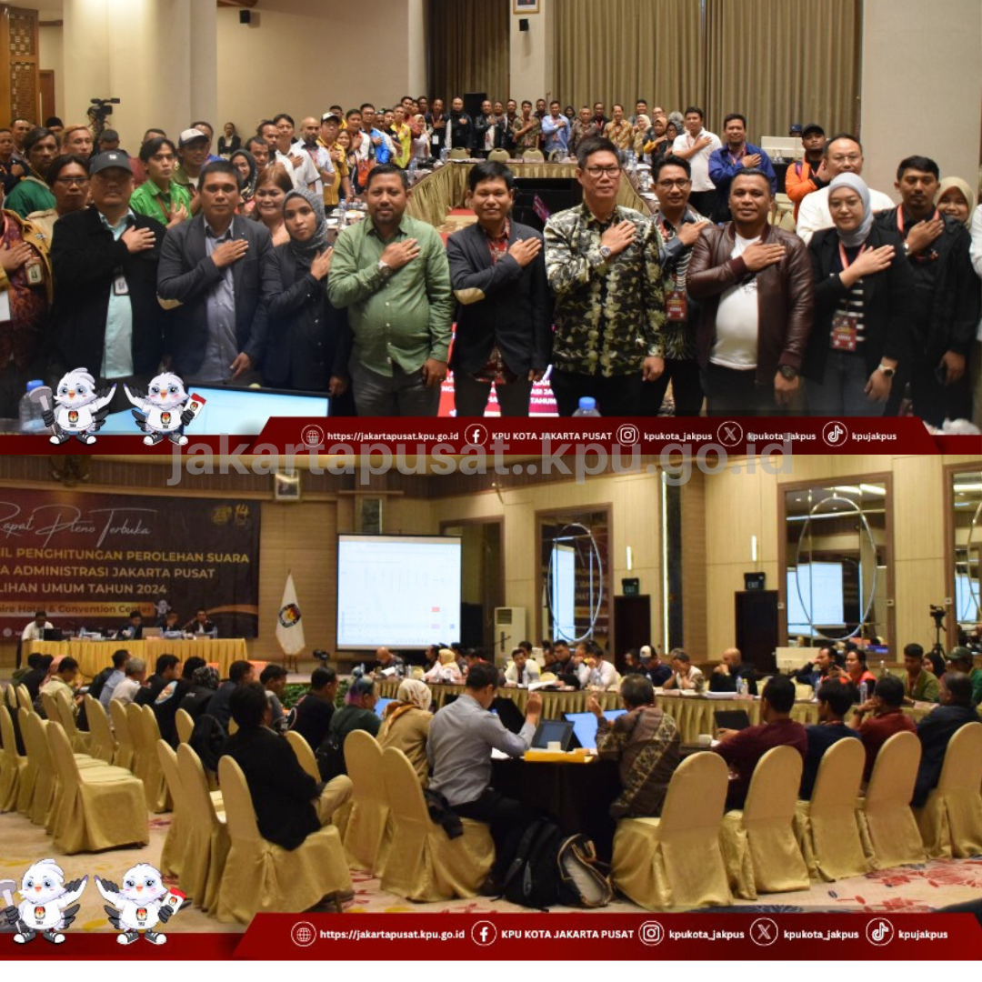 Rapat Pleno Terbuka Rekapitulasi Hasil Penghitungan Perolehan Suara Tingkat Kota Administrasi Jakarta Pusat Pemilihan Umum Tahun 2024